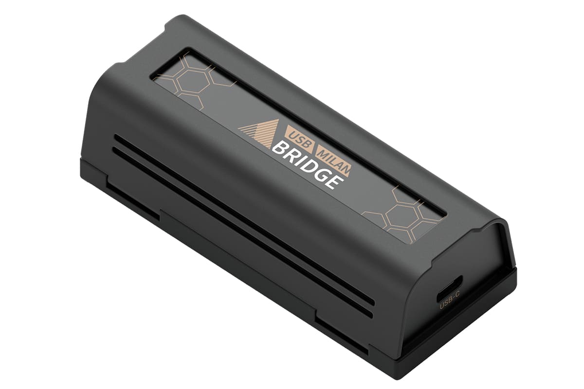 Le USB Milan Bridge est une interface compacte permettant de connecter un ordinateur aux réseaux audio Milan AVB. Il offre 16 canaux d’entrée/sortie en audio haute résolution (96 kHz/32 bits) avec faible latence. L’interface est compatible macOS, Windows 11 et iOS, et se connecte en USB-C pour l’alimentation et l’audio. Elle peut être utilisée pour la diffusion en direct, les tests ou l’intégration en studio.
