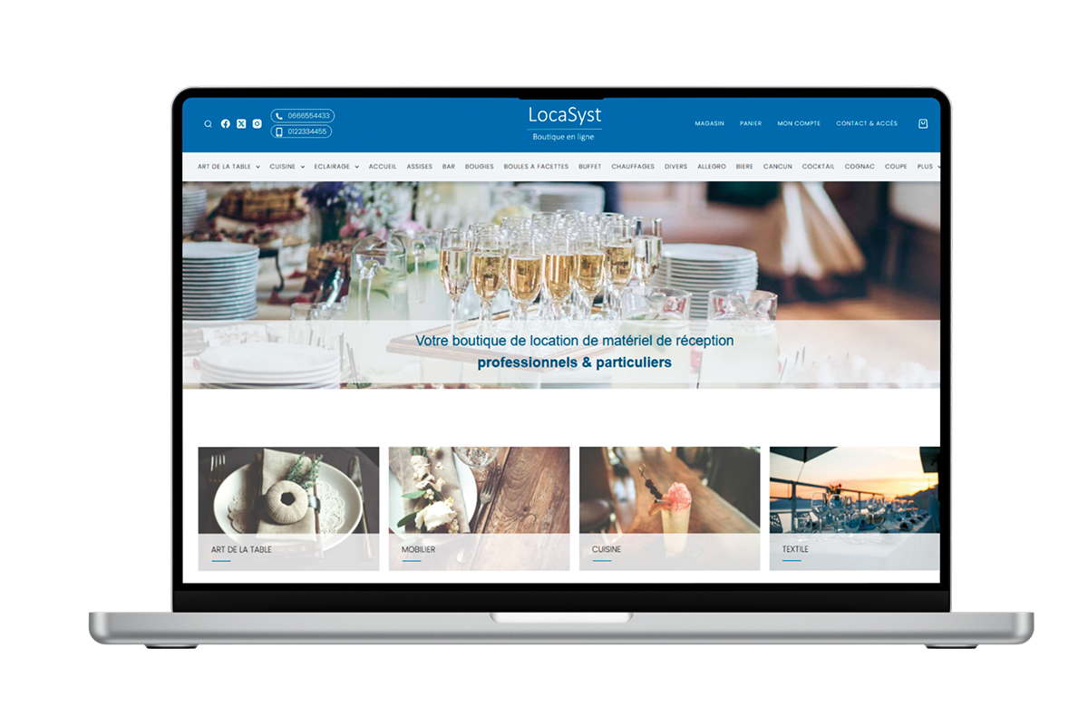 Le module E-Catalogue de Locasyst permet d’automatiser la mise en ligne d’un catalogue destiné aux professionnels de la location événementielle. Il s’appuie sur une synchronisation directe avec la base Locasyst pour assurer la cohérence des données : articles (intitulés, classifications, visuels), tarifs calculés selon les coefficients et stocks en temps réel. L’outil intègre un panier, la sélection des dates avec disponibilité immédiate, et génère automatiquement devis ou réservations. Les contacts créés via la plateforme sont enregistrés dans Locasyst sans intervention manuelle. Une option permet d’ajouter un paiement en ligne. Le module s’intègre à un site existant ou via une boutique en marque blanche.