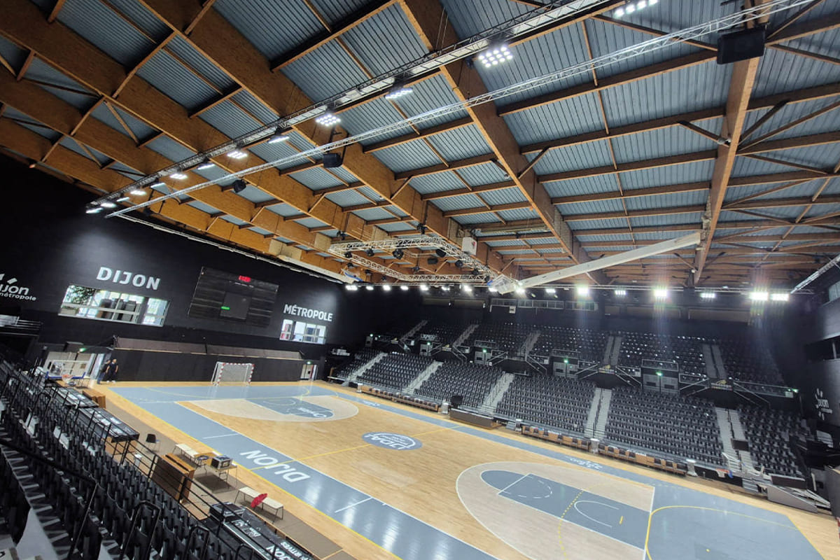 Le Palais des Sports Jean-Michel Geoffroy de Dijon a été équipé d’un système de sonorisation basé sur des enceintes point source Nexo P18. Le cahier des charges visait principalement une amélioration mesurable de l’intelligibilité de la parole pour les commentaires sportifs, dans un volume caractérisé par un temps de réverbération élevé. La solution retenue repose sur 16 enceintes Nexo P18, installées en configuration active. Chaque enceinte P18 offre un niveau de pression acoustique maximal de 142 dB SPL et une réponse en fréquence étendue de 50 Hz à 20 kHz, permettant de couvrir les besoins du site sans ajout de caissons de graves dédiés.