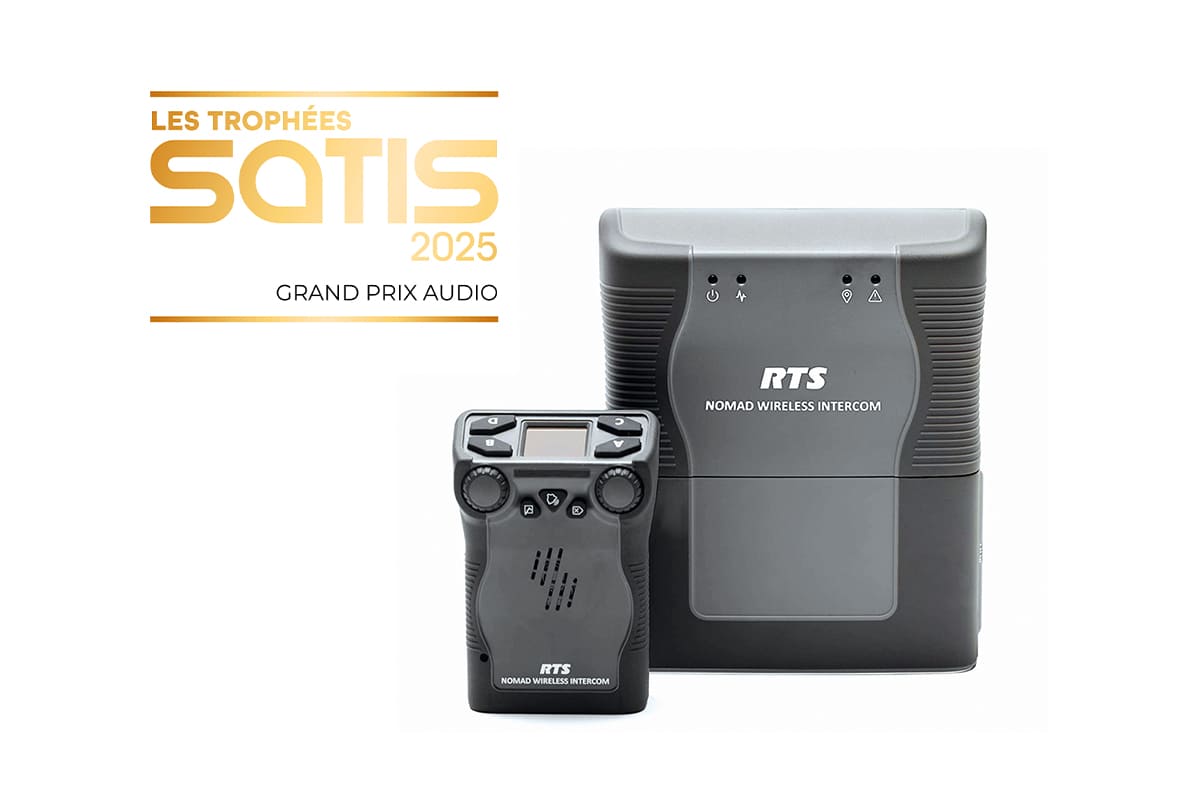 Le système de communication sans-fil DECT Nomad de RTS a reçu un prix spécial au Satis dans la catégorie audio. Il s’appuie sur des beltpacks TR-1000 et des points d’accès AP-1000 pour assurer une transmission audio sur IP, avec appairage Bluetooth et possibilité d’utiliser les beltpacks pendant la recharge. Jusqu’à 120 points d’accès et 100 beltpacks peuvent être intégrés à une même configuration. Le système fonctionne avec les matrices RTS via Omneo (Dante/AES67) et dispose de la certification IP-65 pour un usage extérieur. Une compatibilité ST-2110 et un mode autonome sont prévus dans les développements à venir.